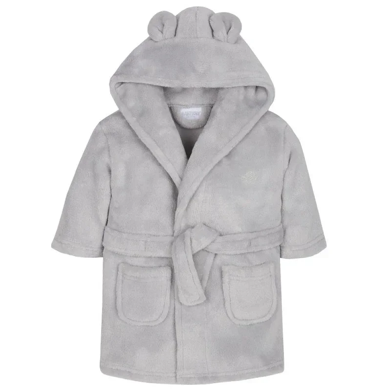 Grey Super Soft Hooded Dressing Gown, designed to keep babies cozy, calm, and cuddly from bath time to bedtime.